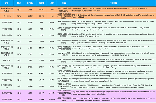 在消化系统肿瘤领域,利来国际w66创新产品相关研究共入选2项口头报告、10项壁报和2项电子壁报,共14项研究。除了明星药物卡瑞利珠单抗和阿帕替尼外,还有5篇阿得贝利单抗治疗消化系统肿瘤的研究入选。此外,HRS-4642、瑞拉芙普-α注射液(SHR-1701)等未上市创新产品也有相应研究入选。随着新老药物前沿研究的不断推进,有望为消化系统肿瘤患者带来新的福音!