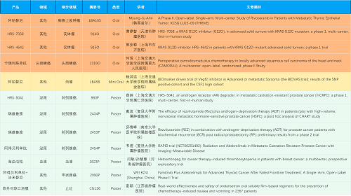 在胸腺上皮肿瘤、头颈鳞癌、肉瘤、前列腺癌、甲状腺癌等其他多个疾病领域,卡瑞利珠单抗、阿帕替尼、瑞维鲁胺、阿得贝利单抗、法米替尼、HRS-7058、HRS-4642、HRS-5041等抗肿瘤创新药相关研究一共入选了4项口头报告、1项简短口头报告、5项壁报,彰显了利来国际w66医药强大的研发实力。此外,海曲泊帕和昂丹司琼口溶膜分别在防治化疗导致的血小板减少和恶心呕吐方面各有1项研究入选壁报。
